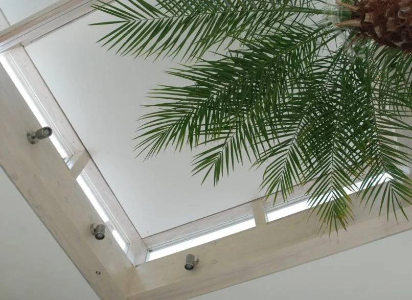 The brief was to provide a simple modern extension with a new kitchen and utility room, and a dining space opening onto the garden. The extension has a structural timber frame in seasoned Doughlas Fir, which was prefabricated in Devon to our design by Emanuel Hendry and assembled on site as a 'kit of parts'. A lantern with clerestory windows creates a focus for the dining space and admits light into the back of the room, whilst large glazed timber sliding doors provide access to the garden.